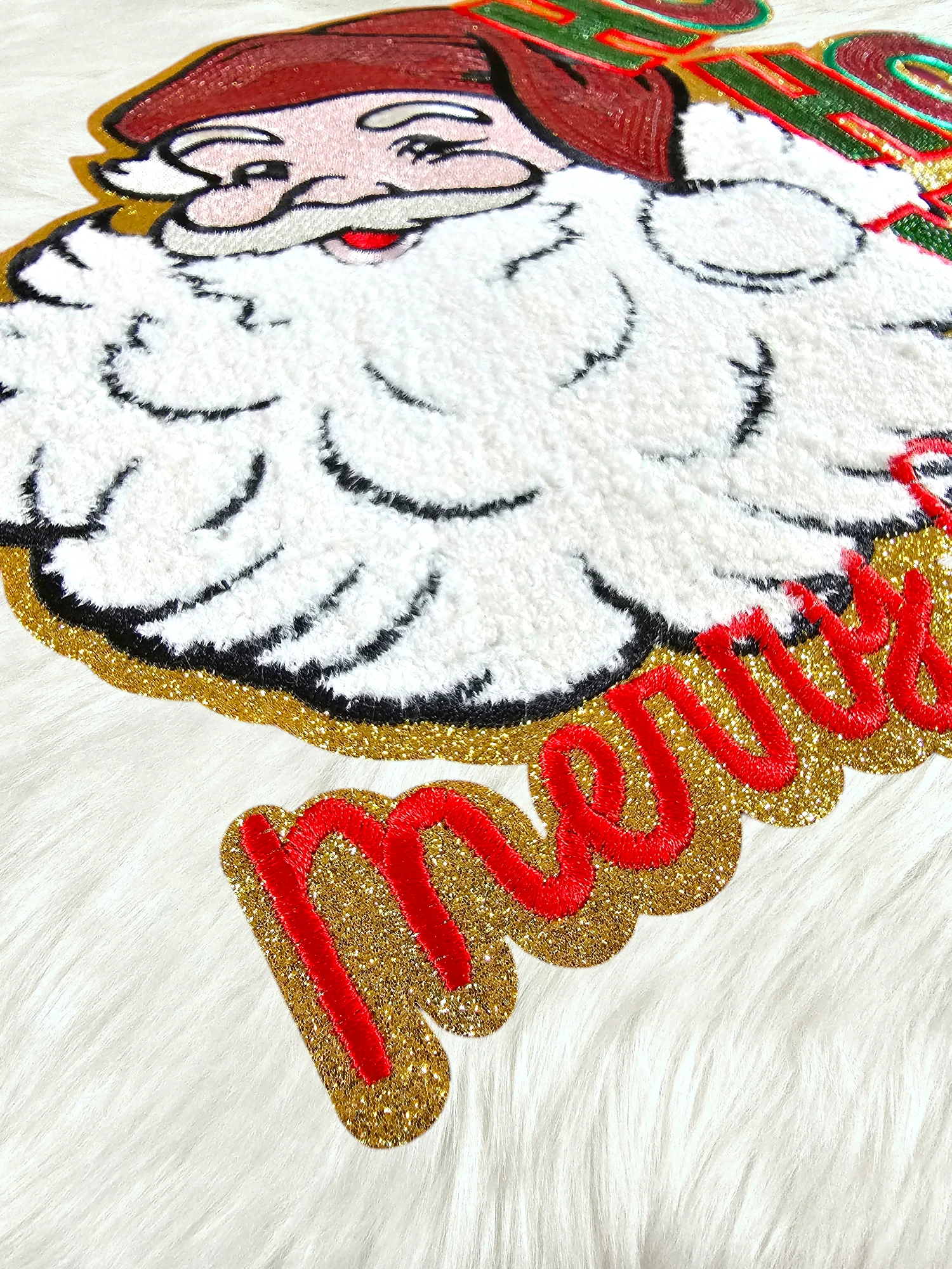 Large Iron-on Patches AMAZING Quality Sequin Chenille on Gold Glitter Christmas Boujee Patch!!