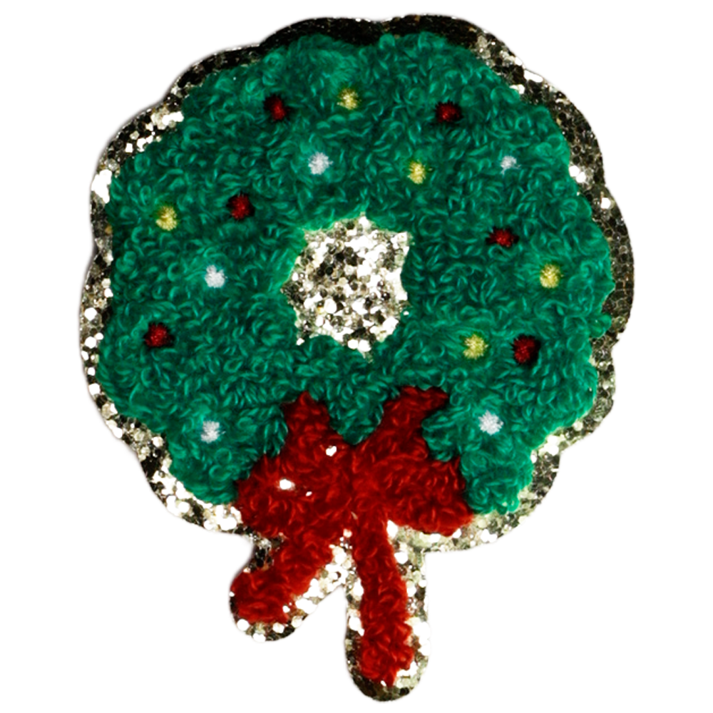 Christmas Wreath 2.5″ Small Christmas Patches Gold Glitter Iron On Patch